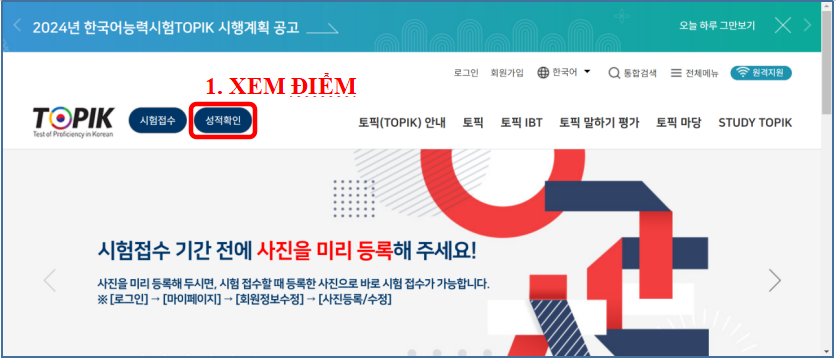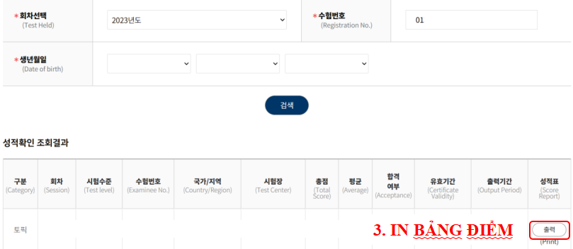 I. Các bước xem điểm TOPIK và in bảng điểm
